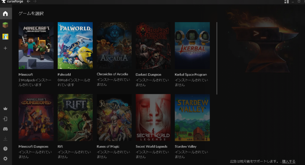 MODパックを導入する上でカースフォージがあると非常に便利ですので、カースフォージの導入をしましょう