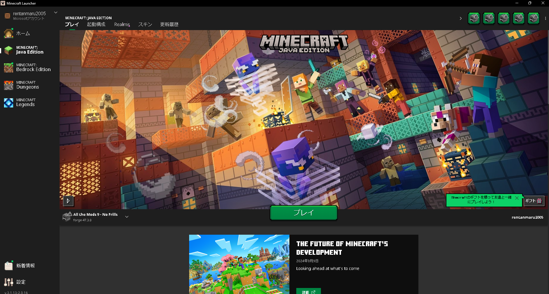 今回はマイクラのMODパックであるAll the Mods 9 – No Frillsの導入方法について解説します。